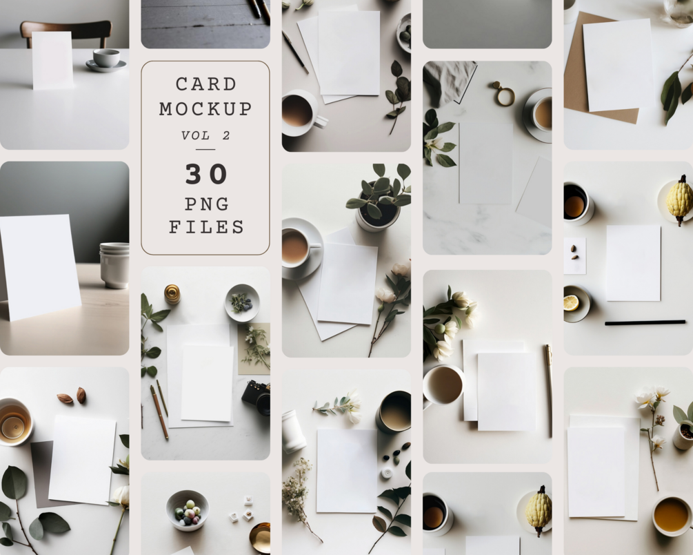 The mockups come as PNG files, and you can easily add your own digital files onto the card using any photo editing software. These mockup files are great for creating unique and professional-looking product listings, social media posts, or advertising campaigns for your online store or portfolio.